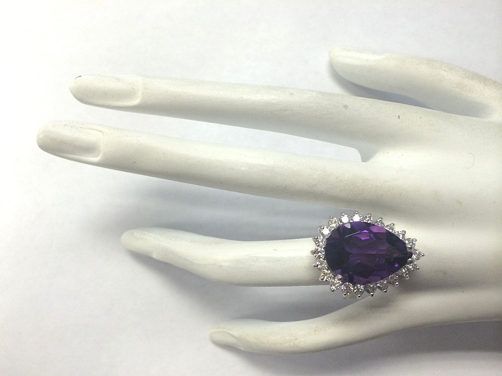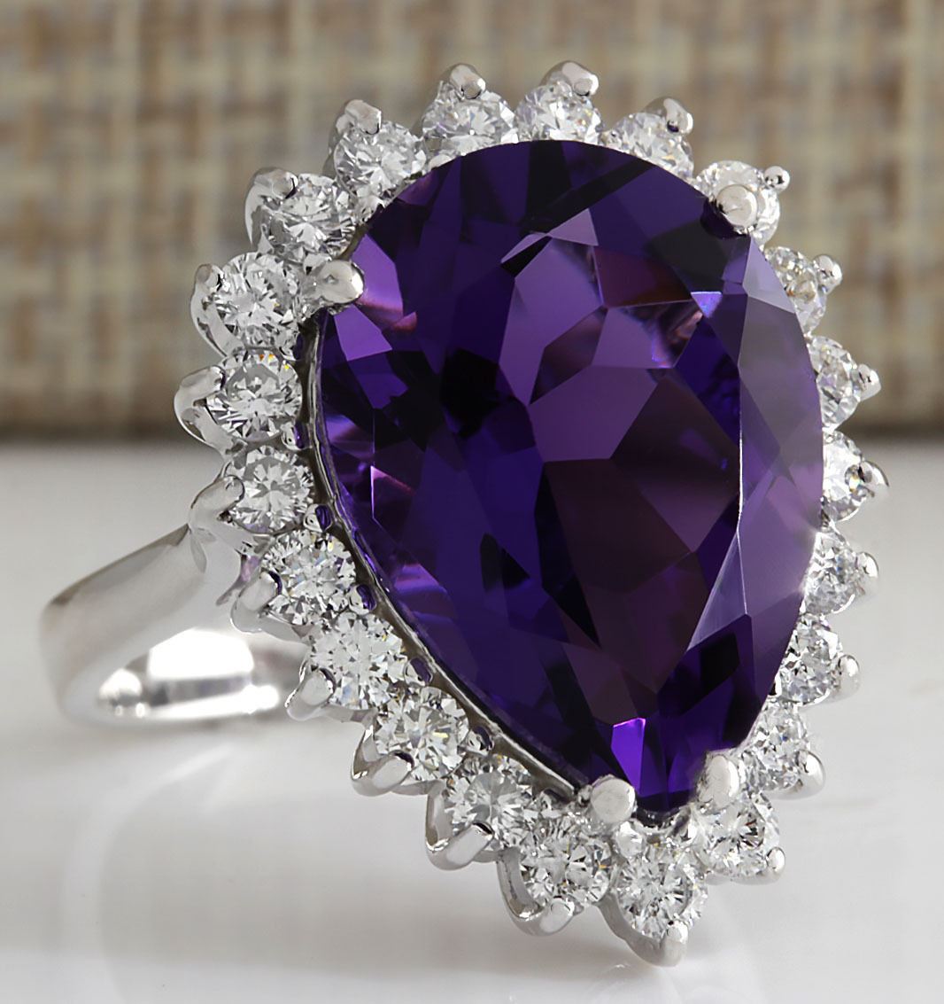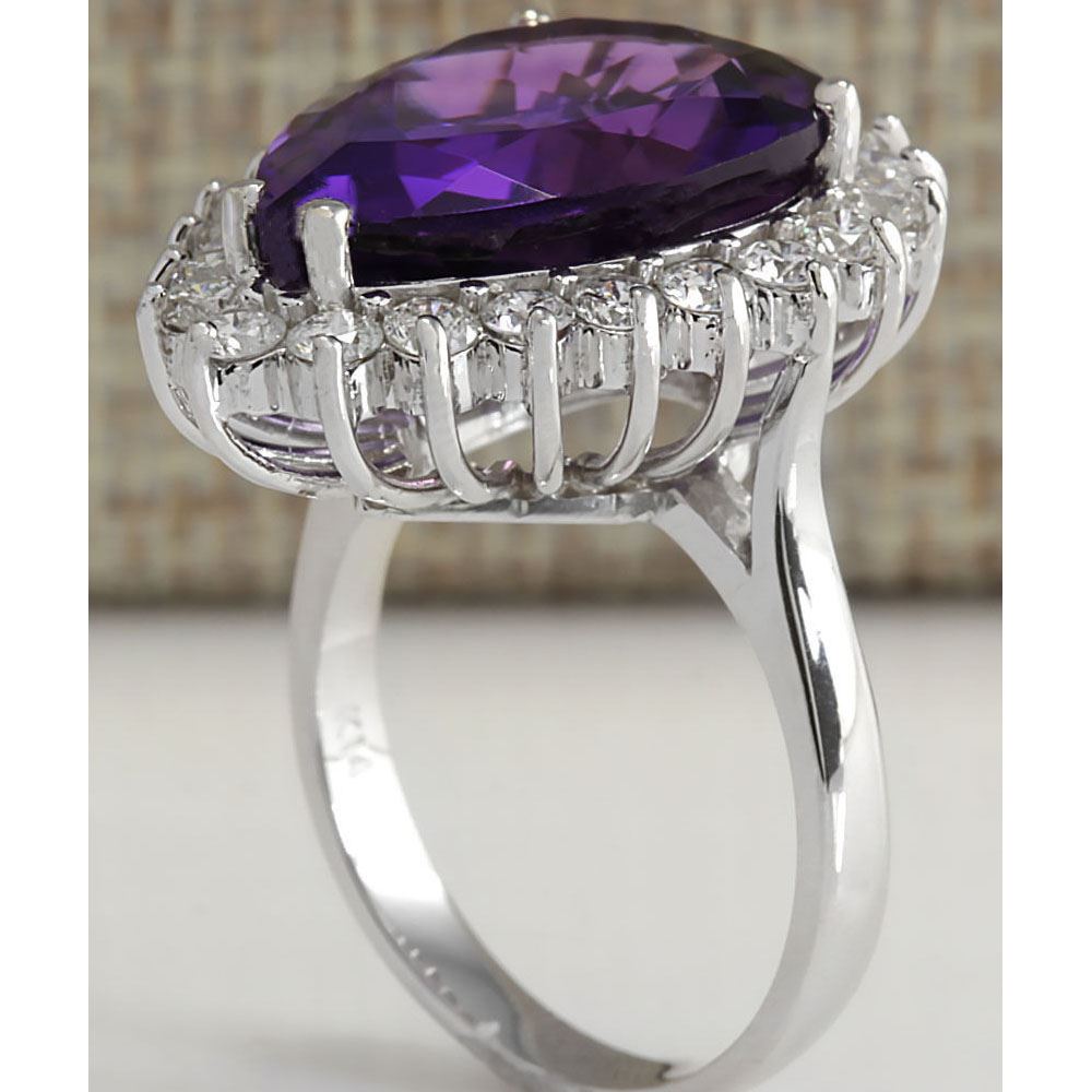 10.80 CTW Natural Amethyst And Diamond Ring In 18K Solid White Gold