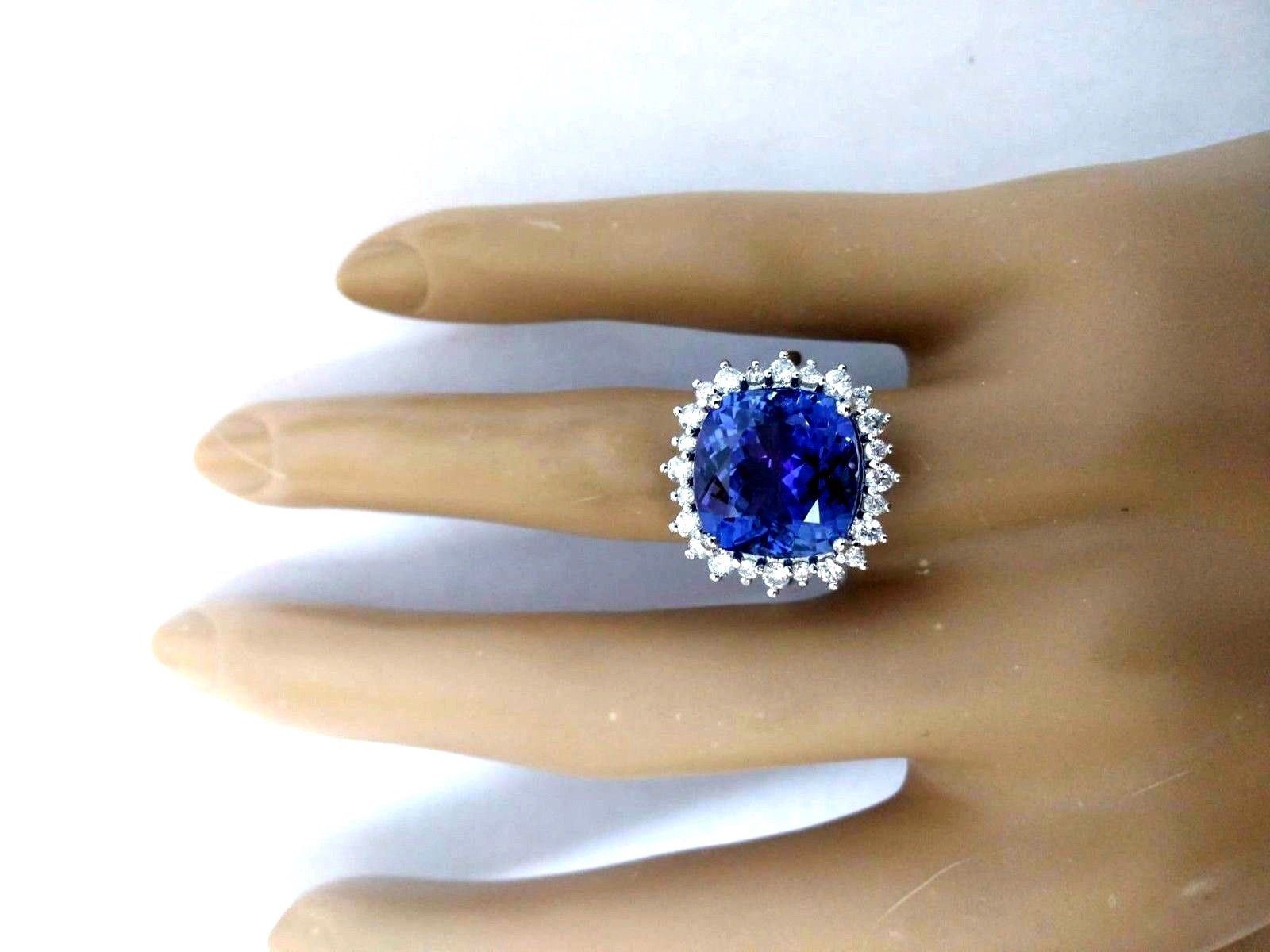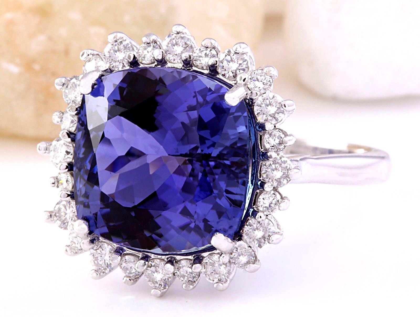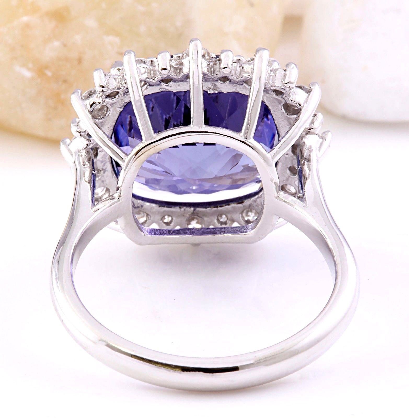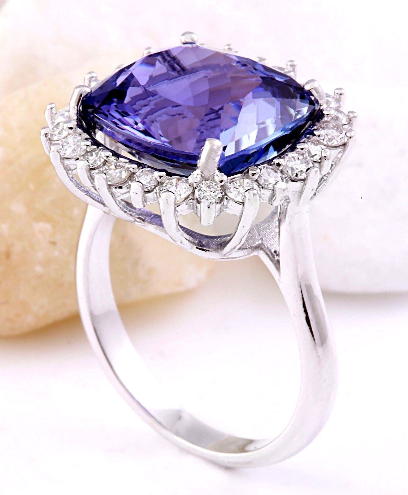 10.81 Carat Natural Tanzanite 18K Solid White Gold Diamond Ring