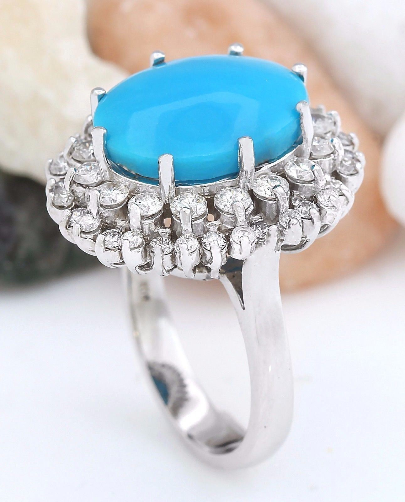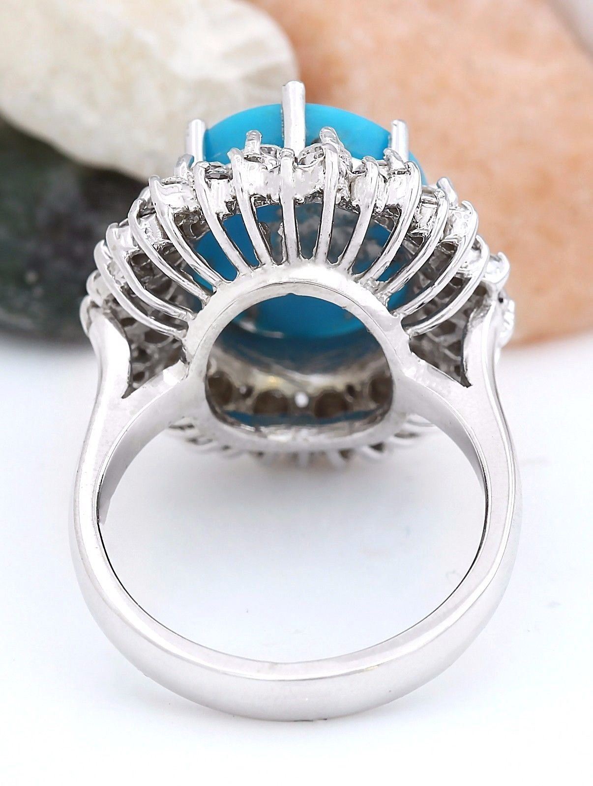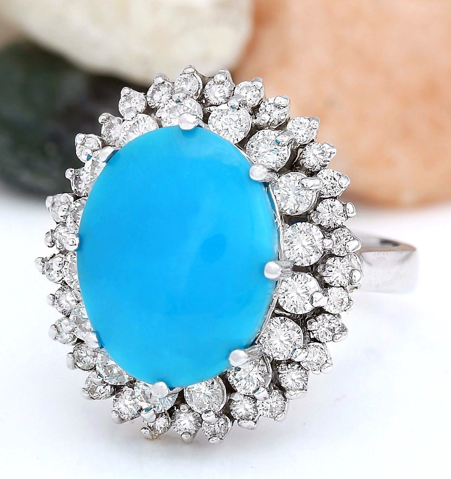 10.82 Carat Natural Turquoise 14K Solid White Gold Diamond Ring