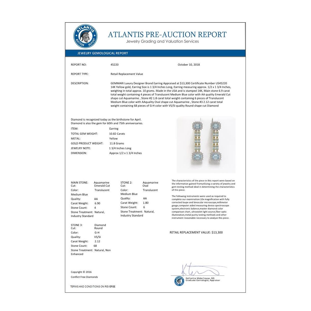 10.82 ctw Aquamarine & Diamond Earrings 14K Yellow Gold