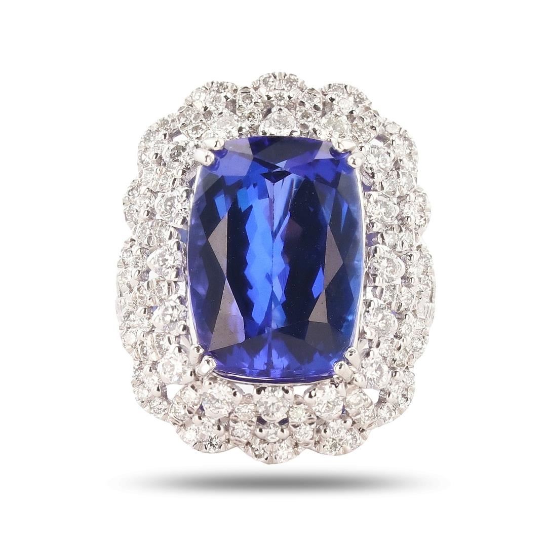 One polished, stamped, and tested platinum ring marked Oscar Friedman. The ring is mounted with: 1 genuine GIA certified tanzanite center stone weighing 10.82 carats, and 100 genuine round diamonds weighing approximately 1.39 carats. This item weighs 13.7