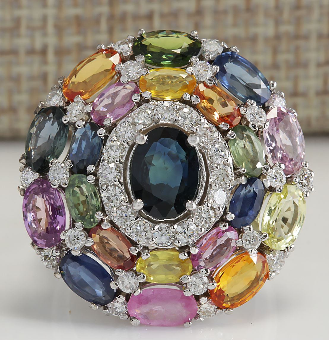 10.83CTW Natural Ceylon Sapphire And Diamond Ring In18K Solid White Gold