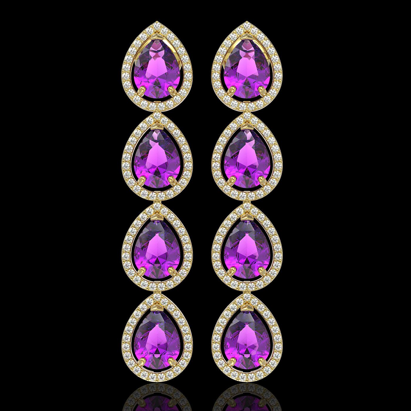 REF-172Y8X - SKU: 41323 ---- 10.85 ctw Amethyst & Diamond Micro Pave Halo Earrings 10k Yellow Gold