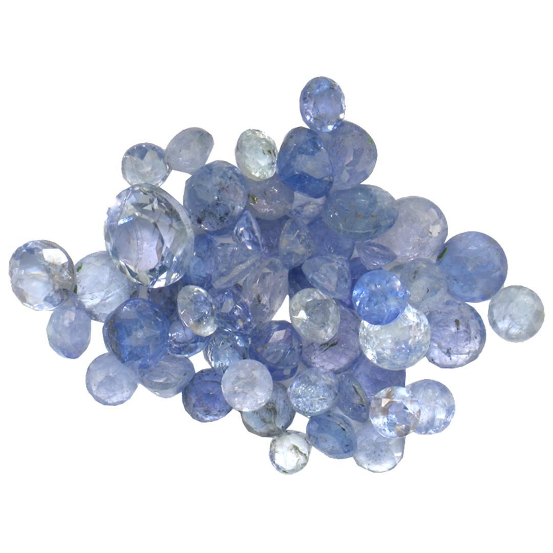 Forty round mixed cut natural tanzanites exact total weight 10.87ct., clarity is slightly included, type I, medium dark, very slightly grayish, bluish violet color, (GIA bV 6/3), cut is good. Transmitting light with a minimum of distortion, transparent. Naturally occurring internal & external characteristics are present. Color grade is an average for the group. Tanzanite is a very rare gemstone that is only found in the country of Tanzania. Originally discovered in 1967. Tiffany & Company, named the stone Tanzanite. It is found in the Usumburu Mountains that border the Umba Valley of northern Tanzania. Tanzanite occurs in gray, brown, violet, blue, reddish-purple, & green. The gem is interesting because of its exceptional pleochroism. Rotated in different directions a tanzanite will exhibit multiple changes of color. Tanzanite has a low tolerance to ultrasonic cleaning, and should not be cleaned using this method. Westfield Appraised at $1,045.00.