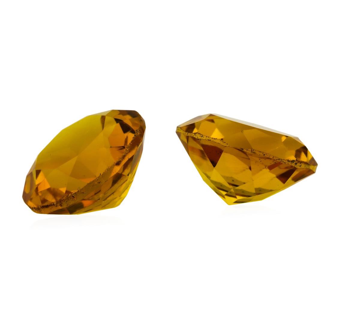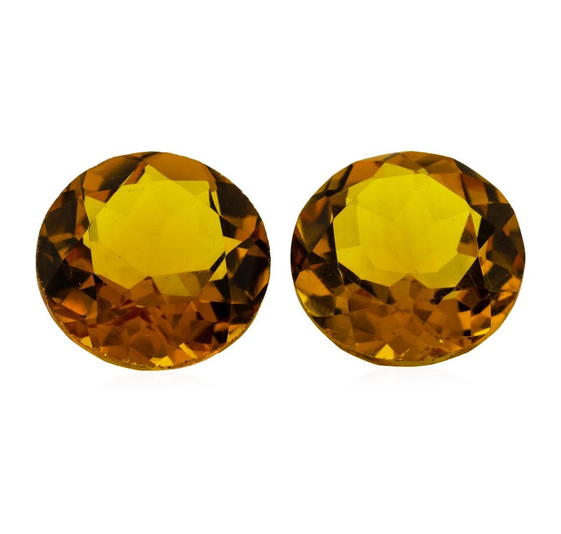 One natural round cut citrine quartz parcel of two with an exact weight of 10.88ctw., clarity is eye clean, yellowish orange, medium dark. Gemological Appraisals Services estimates the retail value at $435.2 GAS Appraised.