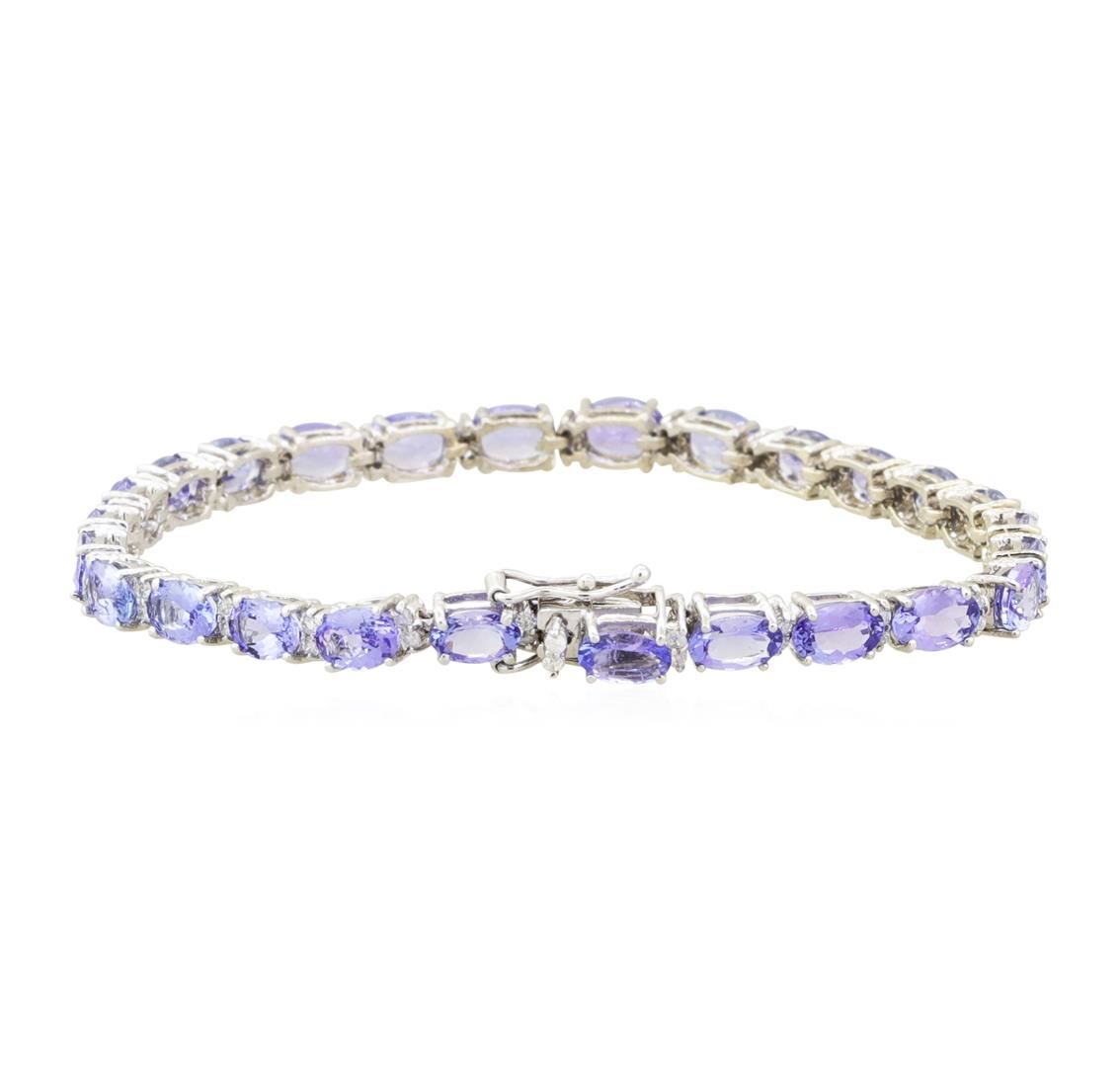 One electronically tested 14KT white gold cast & assembled tanzanite & diamond bracelet. The seven inch length bracelet features a ribbon of oval sapphires, alternating with diamond duos, completed by a concealed clasp, with twin safeties. Condition is good. Containing: Twenty-six prong set oval mixed cut natural tanzanites, measuring 6.00 x 4.00 x 2.48mm, approximate total weight of 10.92ct., clarity is slightly included, type I, medium dark, slightly grayish, bluish violet color, (GIA bV 6/2), cut is good. Transmitting light with no distortion, transparent. Naturally occurring internal & external characteristics are present. Measurements are an average for the group. Graded in the setting.Tanzanite is a very rare gemstone that is only found in the country of Tanzania. Originally discovered in 1967. Tiffany & Company, named the stone Tanzanite. It is found in the Usumburu Mountains that border the Umba Valley of northern Tanzania. Tanzanite occurs in gray, brown, violet, blue, reddish-purple, & green. The gem is interesting because of its exceptional pleochroism. Rotated in different directions a tanzanite will exhibit multiple changes of color. Tanzanite has a low tolerance to ultrasonic cleaning, and should not be cleaned using this method. Fifty-Four prong set round brilliant cut diamonds, measuring 1.40 - 1.30 x 0.83mm (depth est.) approximate total weight of 54 Stones = 0.53ct. Graded in the setting. Clarity SI-2 to I-2 Color F - H Total Weight of Colored Stones 10.92 ct. Total Weight of Diamonds 0.53 ct. Total Weight of Bracelet 9.30 gm Estimated Retail Value $ 6,850.00 US