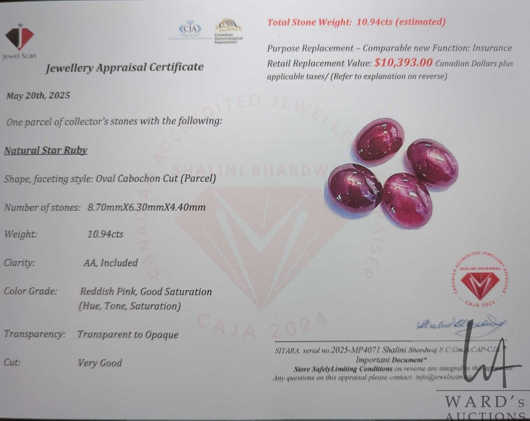 10.94 ct Certified Blue Star Ruby gemstone Parcel Certificate provided by consignor