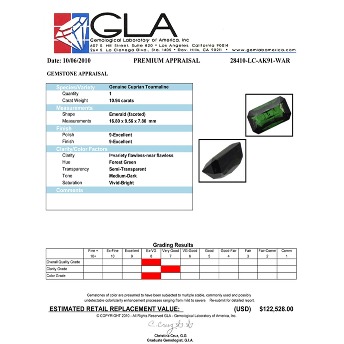 In the event that an item is listed as having an "Appraisal Estimate", this represents WAR's in-house estimate of what the item would appraise for at Gem Labs of America (GLA), Beverly Hills, CA. Actual appraisal of the item at GLA is the responsibility of the Bidder, however WAR may assist, at its discretion, in related logistics. WAR does provide the following guaranty (the "WAR 5% Loose Gem Guaranty") relative to Appraisal Estimate values of LOOSE GEMS: In the event that the GLA appraised value is not such an amount that the Bidder's winning bid is five percent (5%) or less of the GLA appraised value, then WAR, in it's discretion, will either refund such amount of the Bidder's winning bid and related charges so that the winning bid equals five percent (5%) of the GLA appraised value, or, instead issue a full refund on the item and reimburse the Bidder for the GLA appraisal fees. The Bidder may also opt to retain the item, in which case the WAR 5% Gem Guaranty shall not apply relative to the particular item.