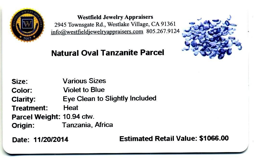 10.94ctw. Natural Oval Tanzanite Parcel. Westfield Appraised at $1,066.00.