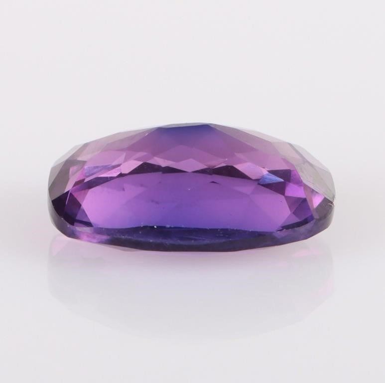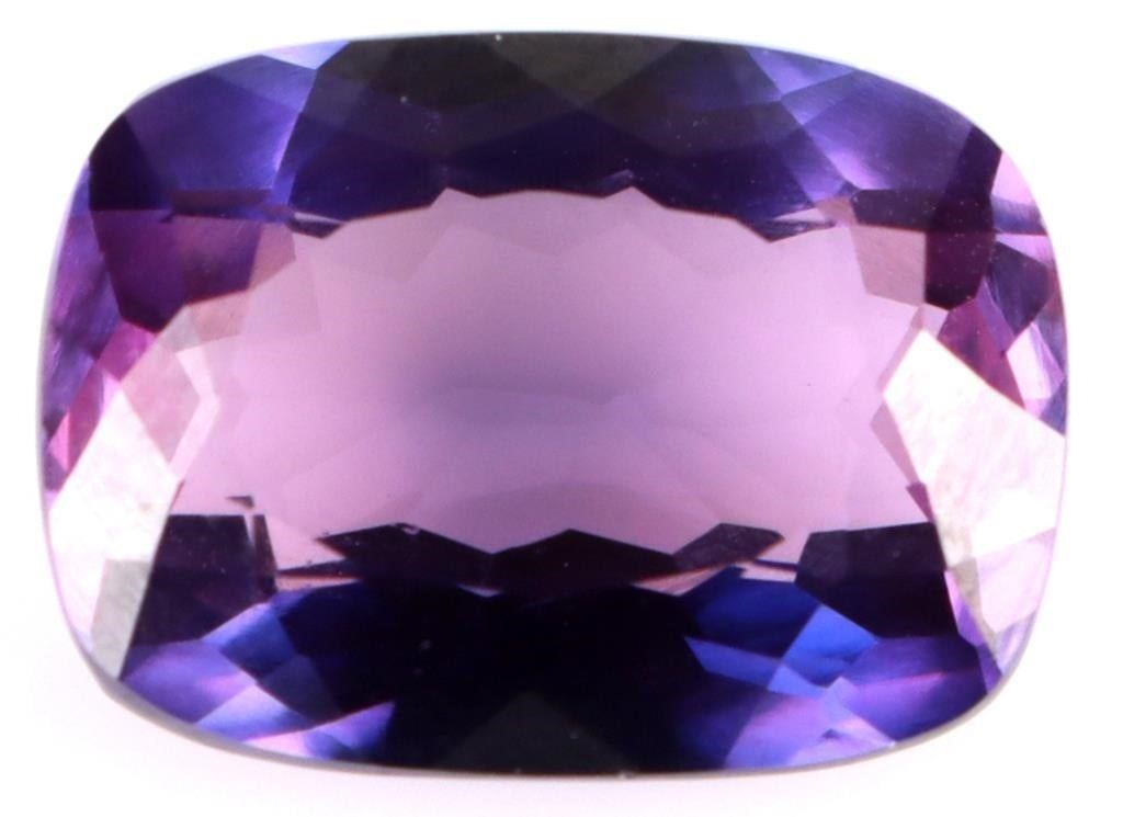 10.95ct cushion cut bi-color purple-blue loose sapphire gemstone. Stone has been electronically tested and identified, tester does not distinguish between lab grown and natural.
