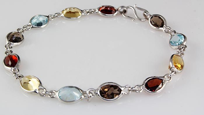 10.95CT Multi Precious Gemstone Silver Bezel Bracelet 2 **|**|** 7.0" Long Natural Multi-color Precious Gemstone in Bezel Design Silver Bracelet; 12pcs 7x5mm ; MSRP: $800