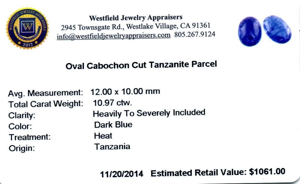 10.97ctw. Oval Cabochon Cut Tanzanite Parcel. Westfield Appraised at $1,061.00.