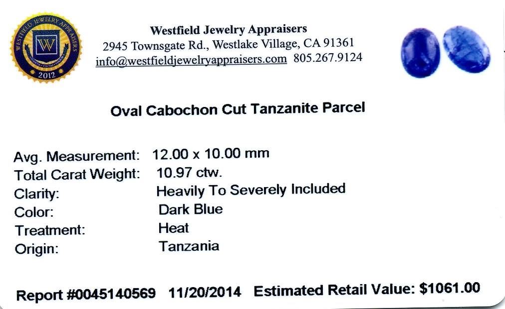 10.97ctw. Oval Cabochon Cut Tanzanite Parcel. Westfield Appraised at $1,061.00.