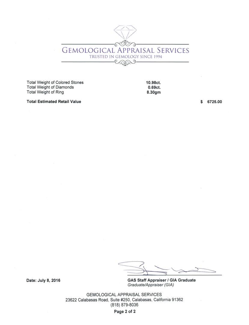 Not all Jewelry, watches or loose stones are appraised and the appraisals are provided for bidders only in certain instances at the discretion of SAA. Our appraisals are conducted by independent third-party appraisal firms. Such firms may be certified GIA Gemologists or have education in the industry or alternative certifications. Appraisals should be used for verification of gemstone and/or metal weight, size, and grade only, not actual value for resale or insurance purposes. Appraisal value should be not considered for actual value, as price varies greatly from retail locations and other merchants in different geographic locations. All Items auctioned by SAA should not be purchased with a view or expectation toward resale for appraisal price given, or to make a profit. The ultimate value for which an item can be resold may vary drastically from the appraisals listed by SAA.