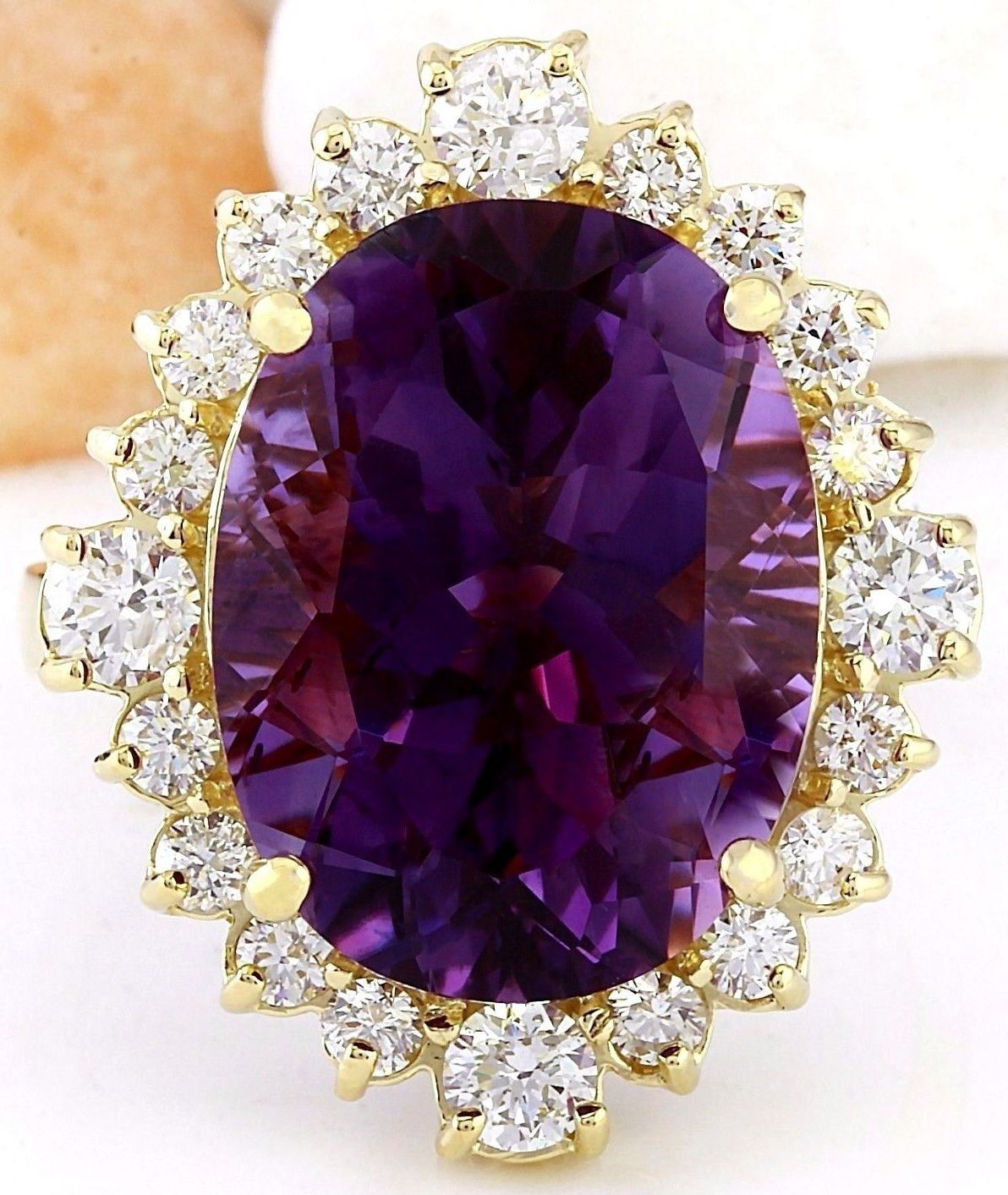 10.99 Carat Natural Amethyst 14K Solid Yellow Gold Diamond Ring