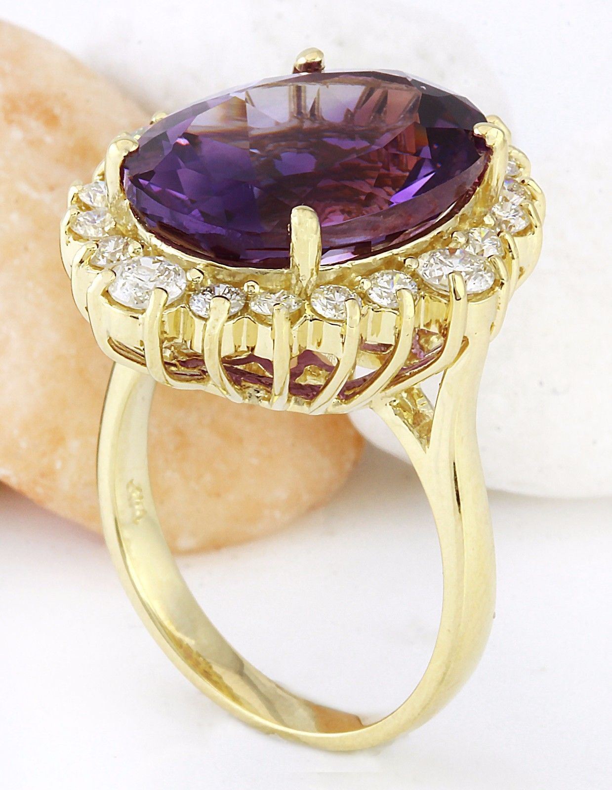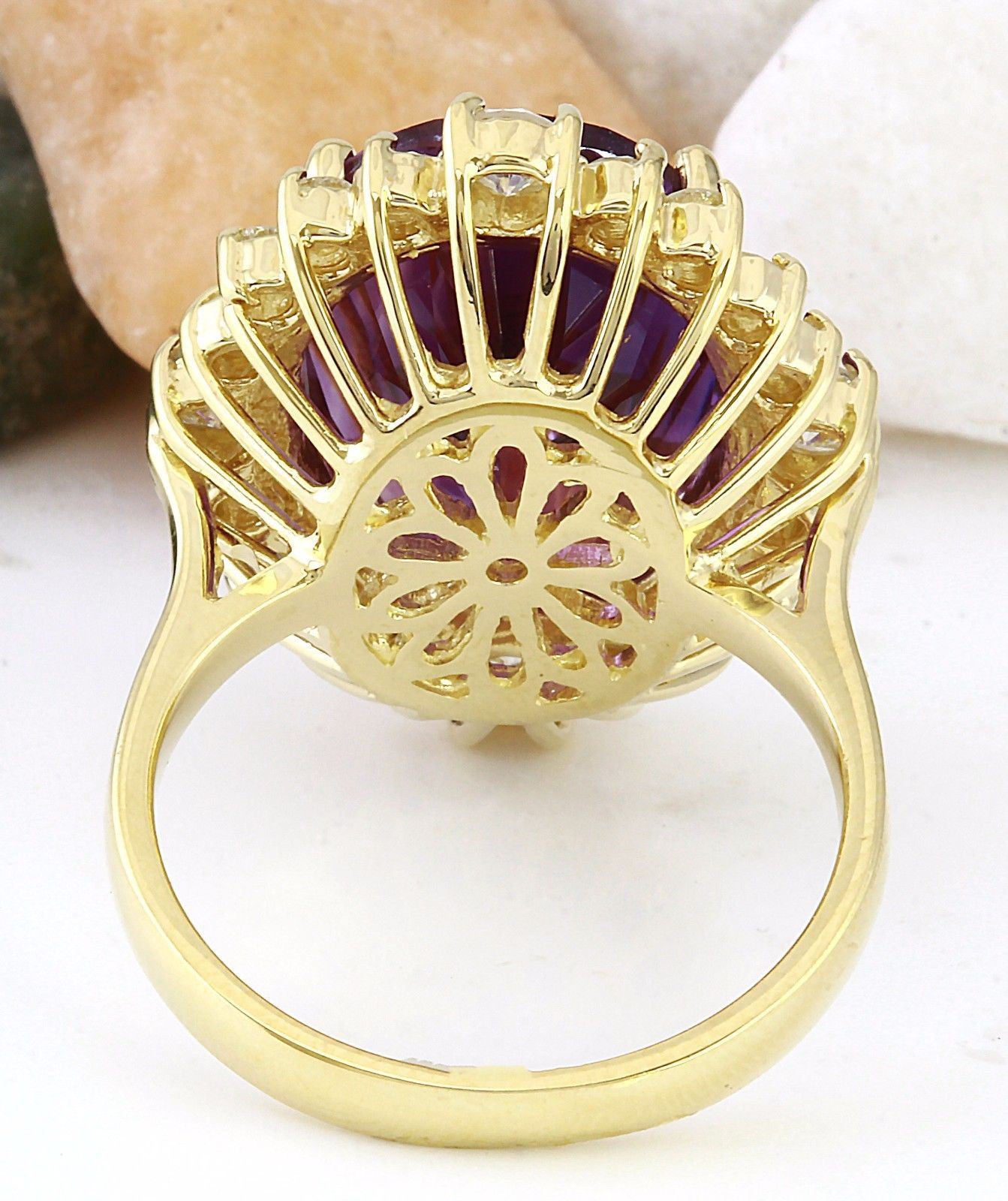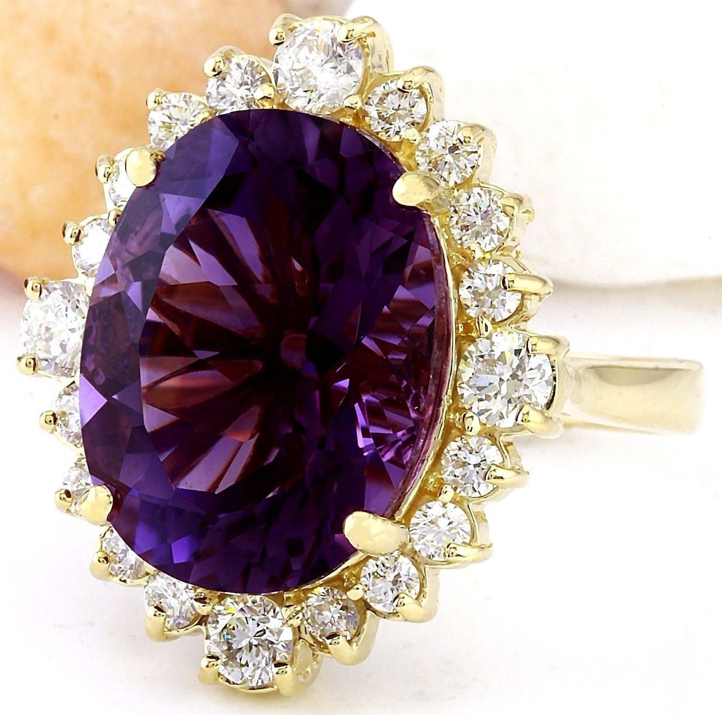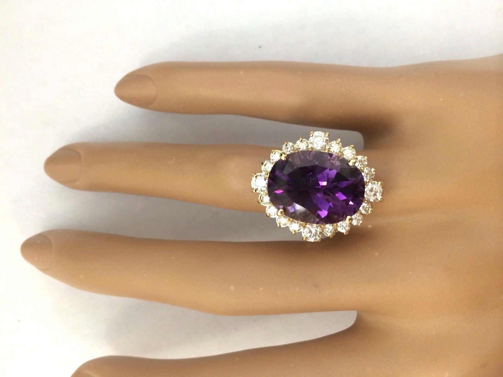 10.99 Carat Natural Amethyst 18K Solid Yellow Gold Diamond Ring