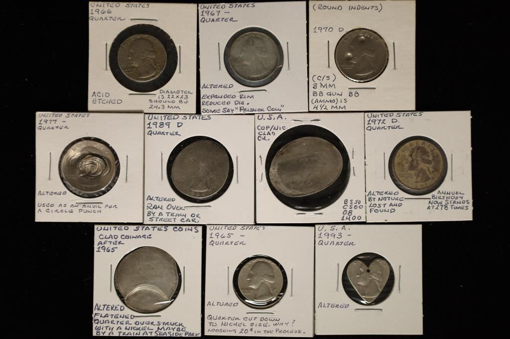 BB GUN INDENTS, CIRCLE PUNCHED, RUN OVER, ELONGATES, ENVIRONMENTAL DAMAGE, FLATTENED OVER STRUCK, CUT DOWN AND CUT HEART SHAPED POSSIBLE JEWELRY PIECE