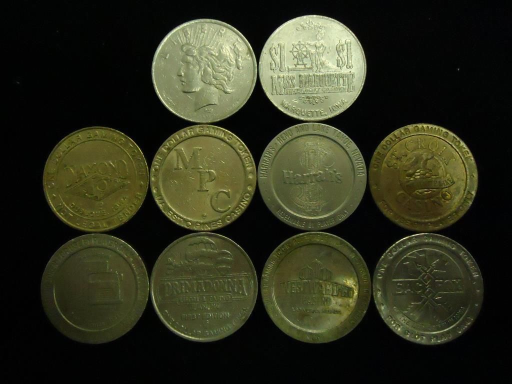 10 ASSORTED $1 GAMING/CASINO TOKENS