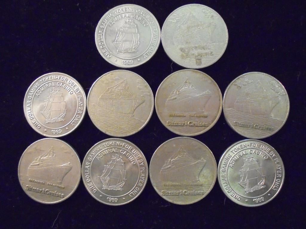 10 ASSORTED $1 TOKENS FROM CLOSED CASINOS