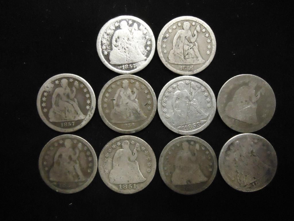 10 ASSORTED 1850'S SEATED LIBERTY DIMES