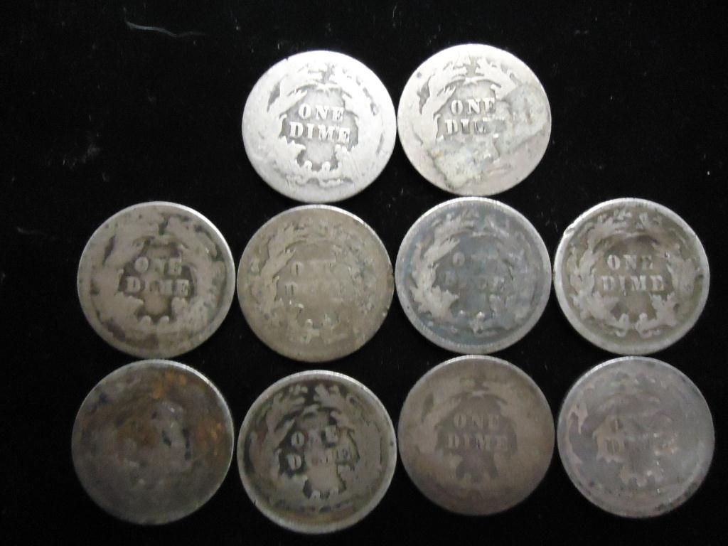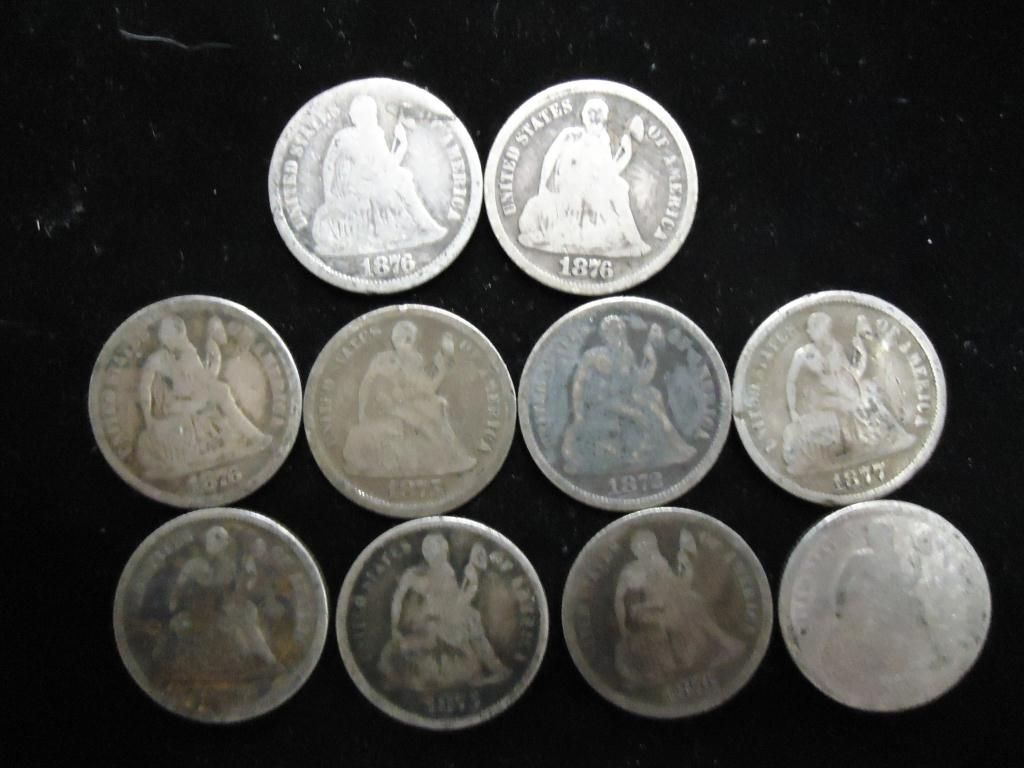 10 ASSORTED 1870'S SEATED LIBERTY DIMES