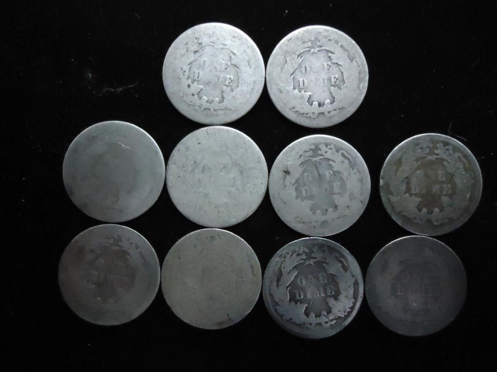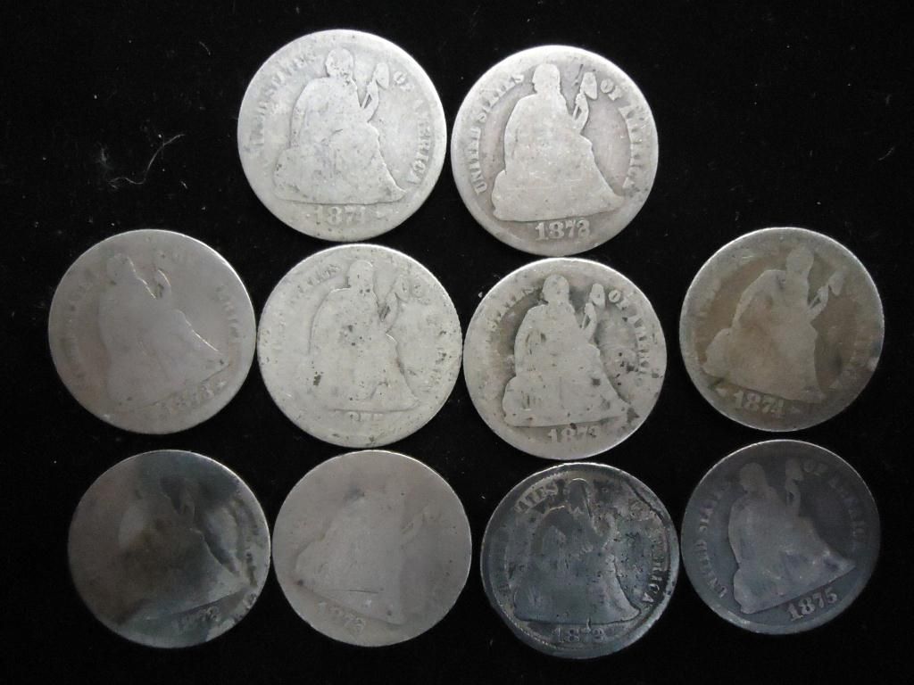 10 ASSORTED 1870'S SEATED LIBERTY DIMES