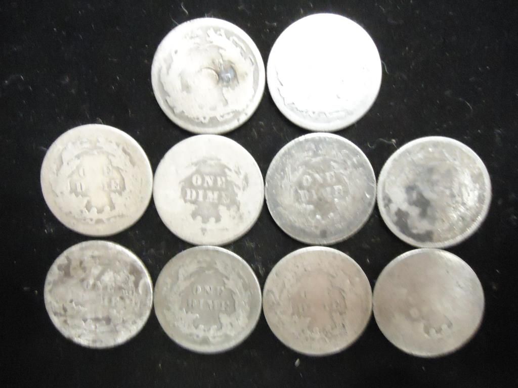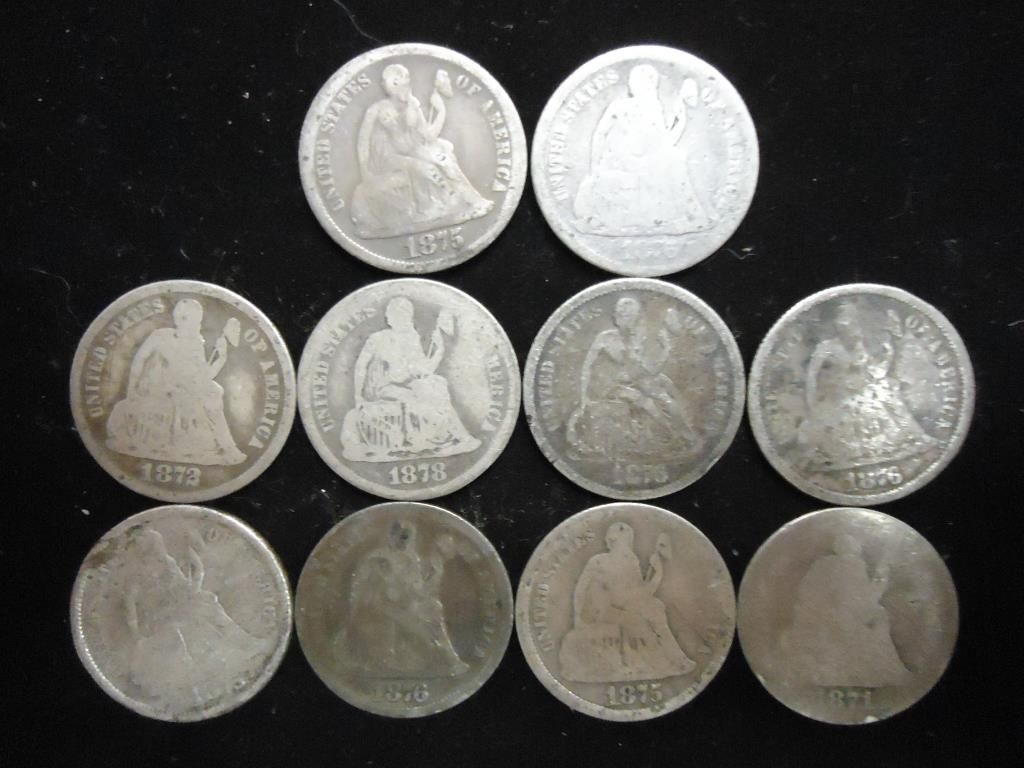 10 ASSORTED 1870'S SEATED LIBERTY DIMES