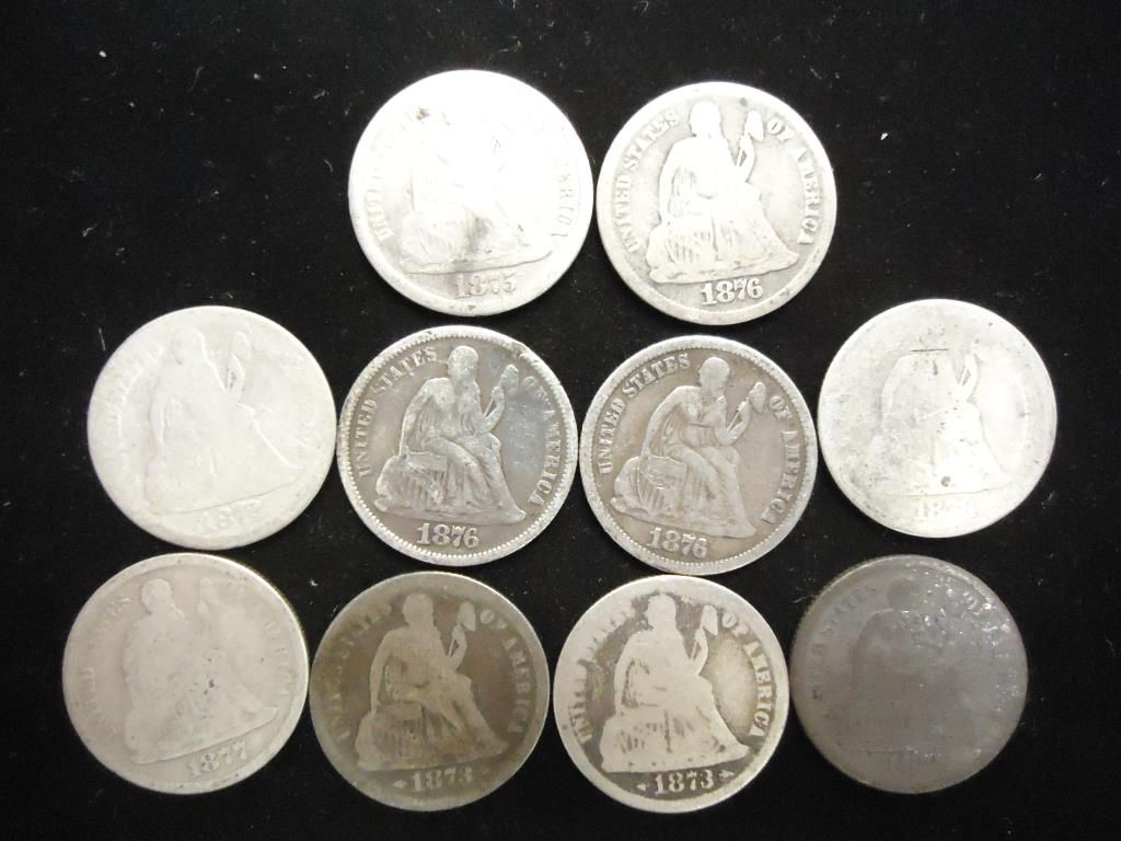 10 ASSORTED 1870'S SEATED LIBERTY DIMES