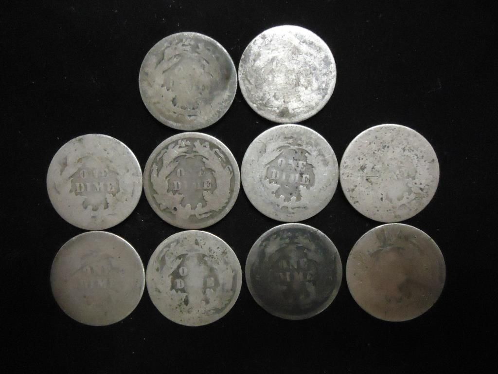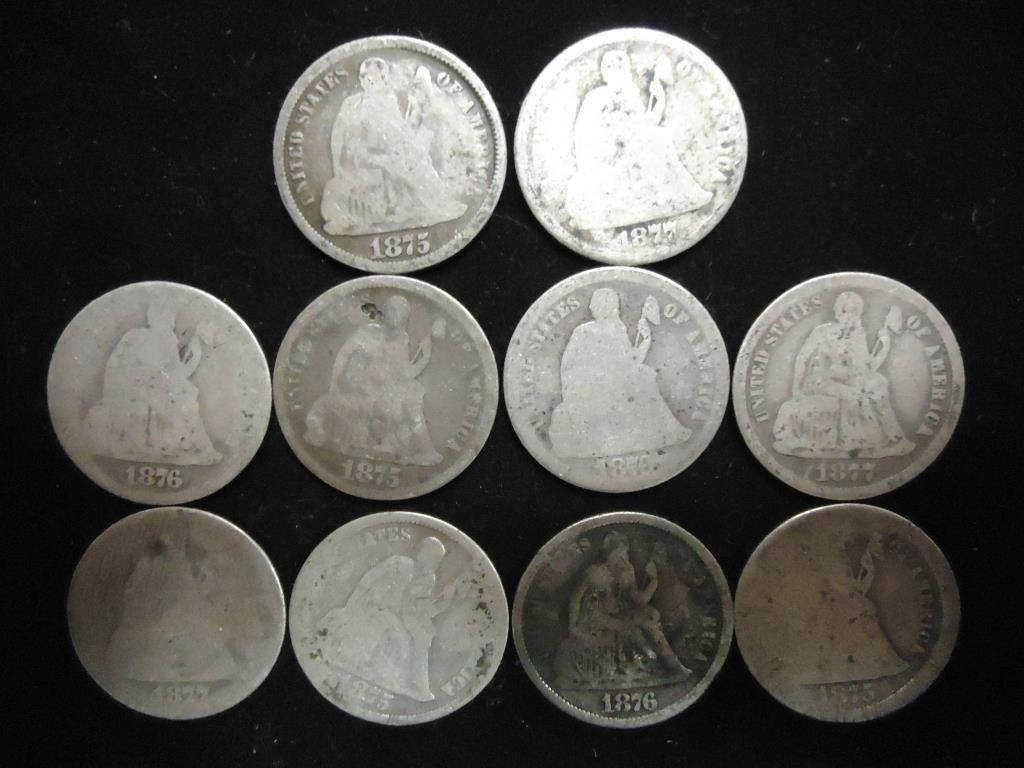 10 ASSORTED 1870'S SEATED LIBERTY DIMES