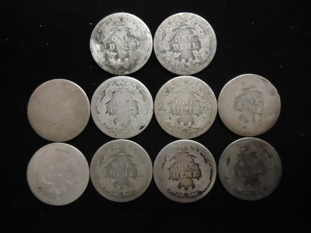 10 ASSORTED 1870'S SEATED LIBERTY DIMES