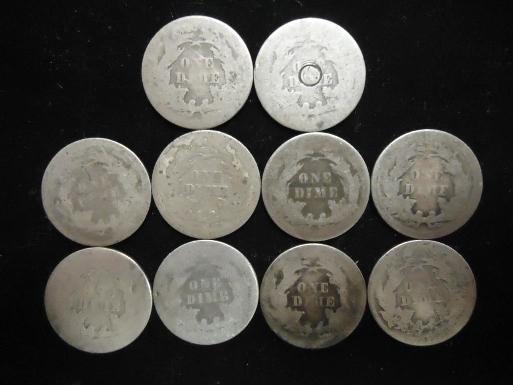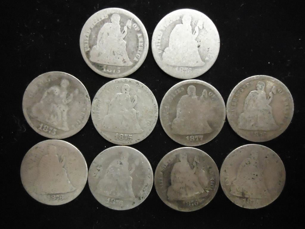10 ASSORTED 1870'S SEATED LIBERTY DIMES