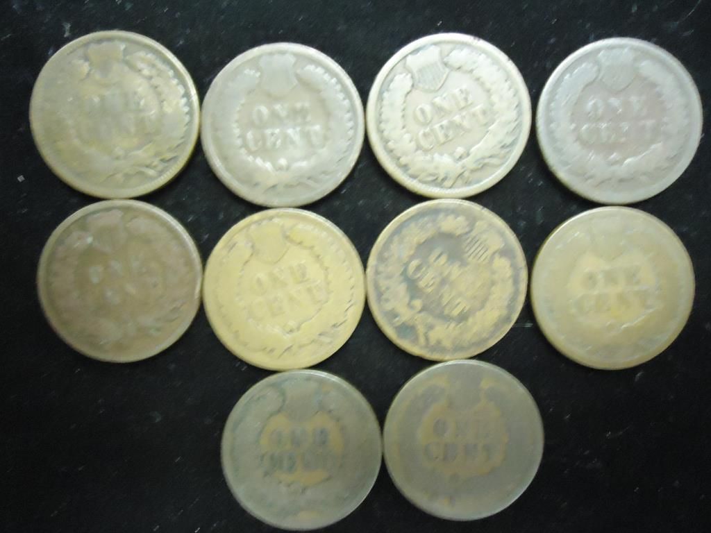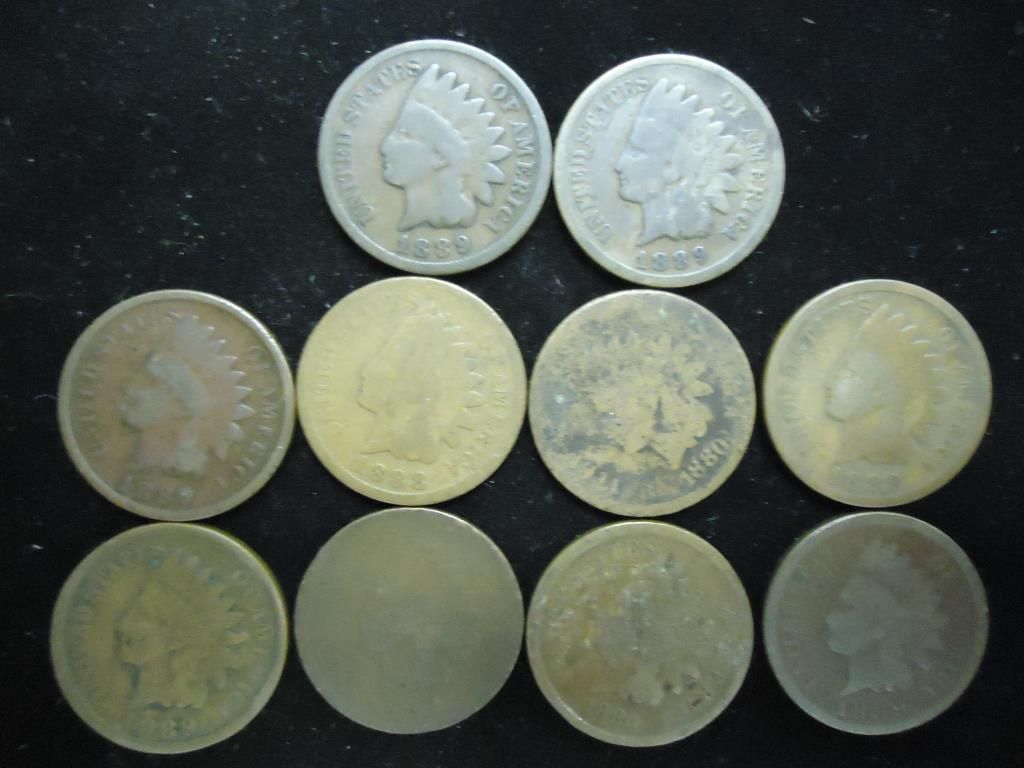 10 ASSORTED 1880'S INDIAN HEAD CENTS