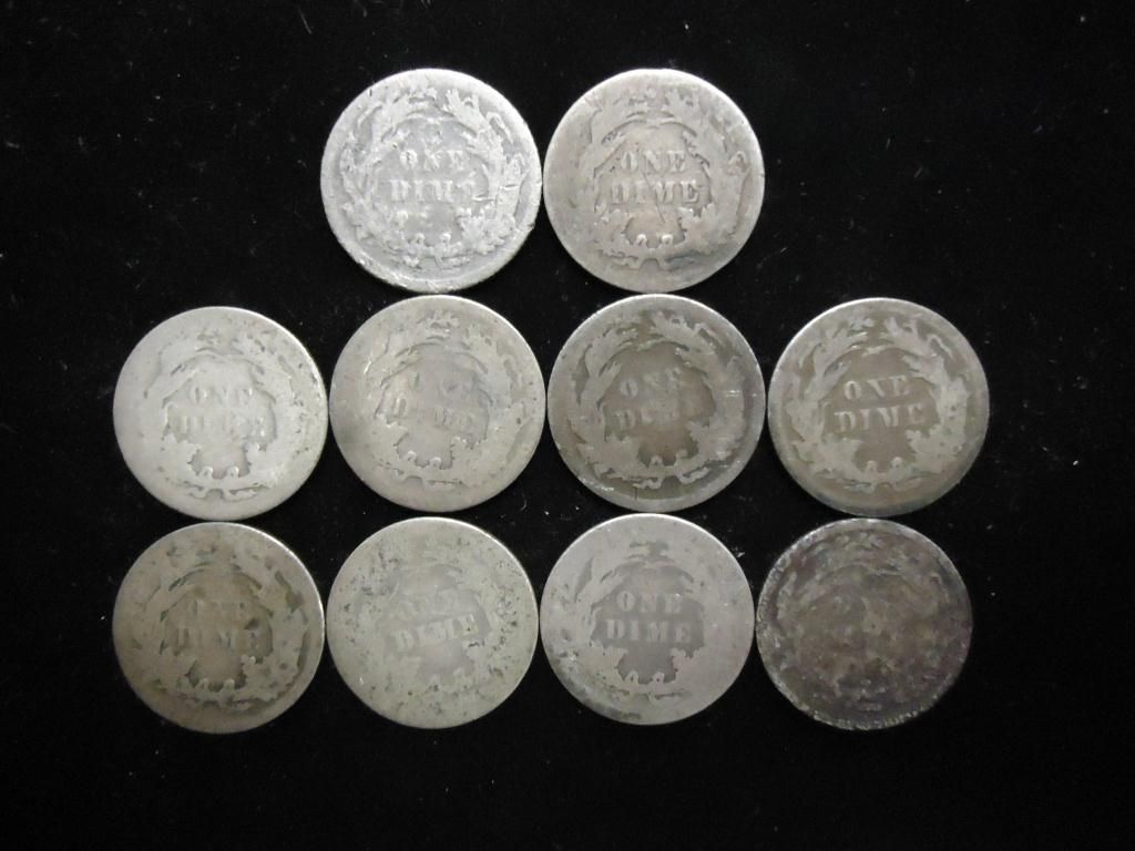 10 ASSORTED 1880'S SEATED LIBERTY DIMES