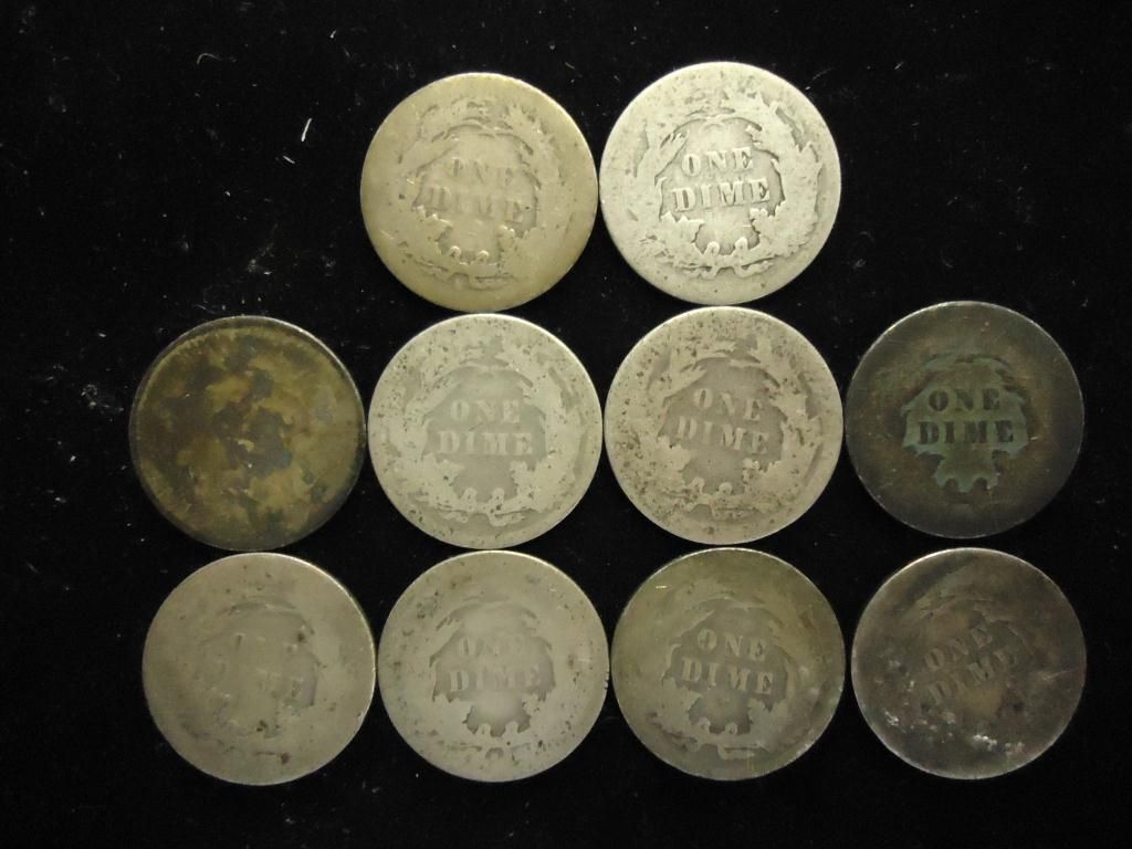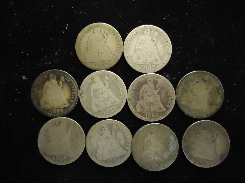 10 ASSORTED 1880'S SEATED LIBERTY DIMES