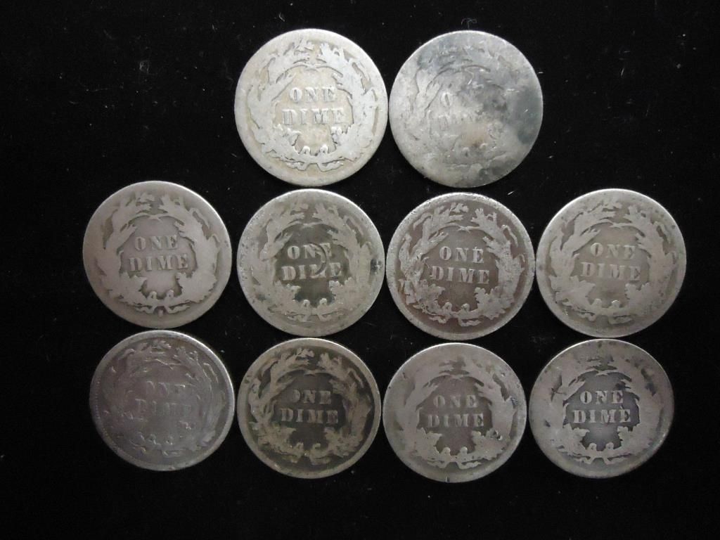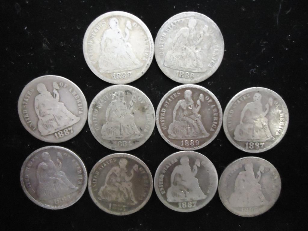 10 ASSORTED 1880'S SEATED LIBERTY DIMES