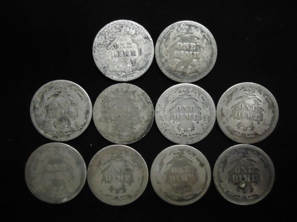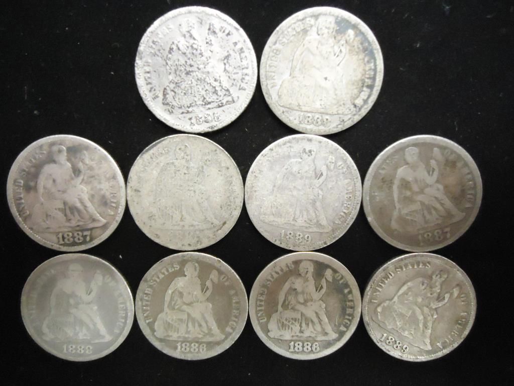 10 ASSORTED 1880'S SEATED LIBERTY DIMES