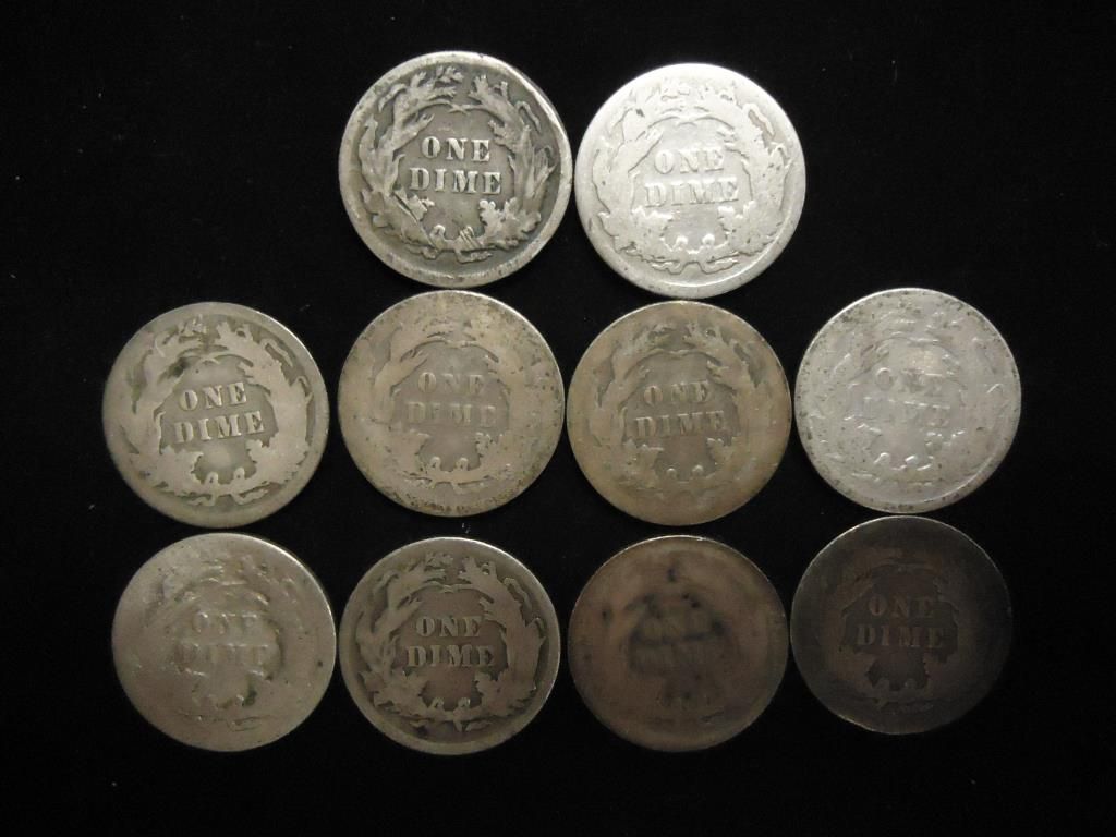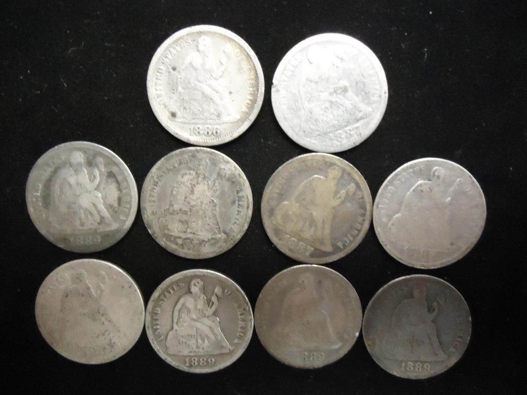 10 ASSORTED 1880'S SEATED LIBERTY DIMES