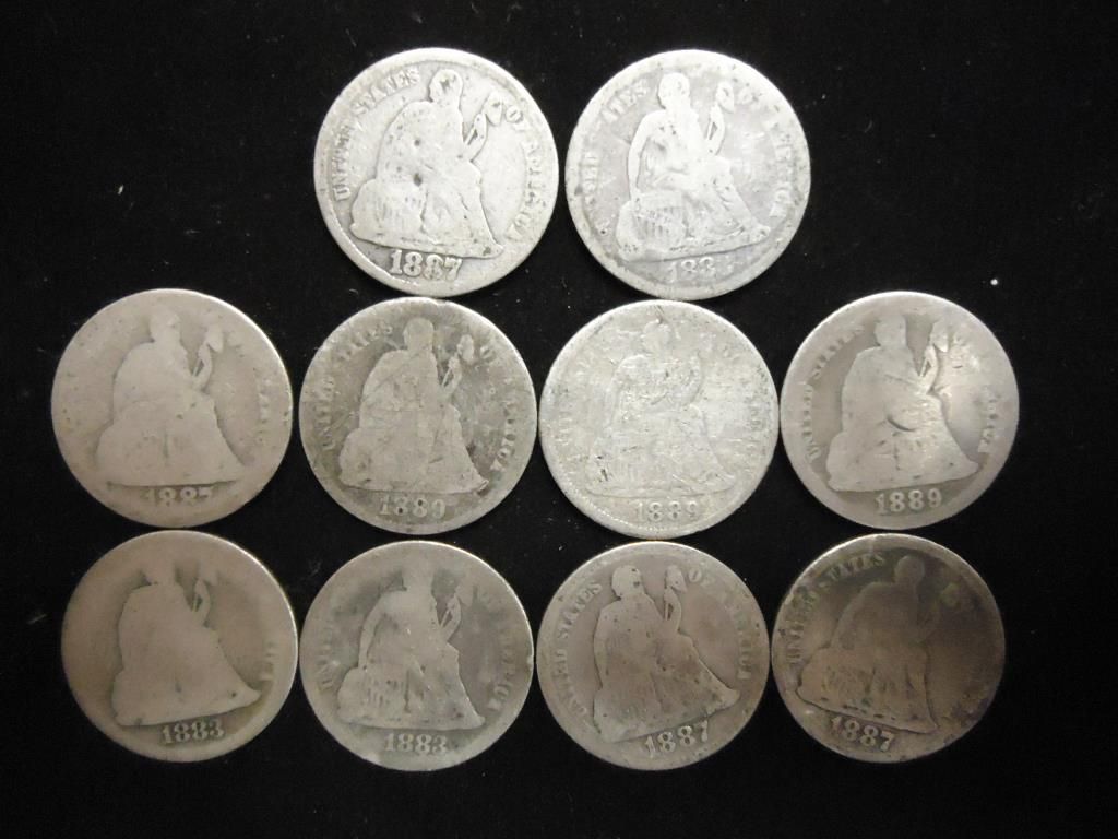 10 ASSORTED 1880'S SEATED LIBERTY DIMES
