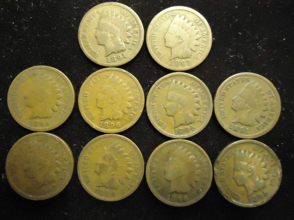 10 ASSORTED 1890'S INDIAN HEAD CENTS