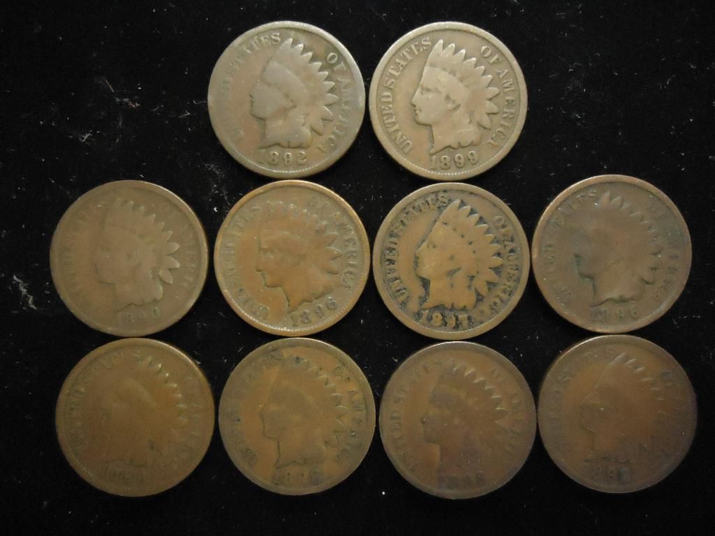 10 ASSORTED 1890'S INDIAN HEAD CENTS