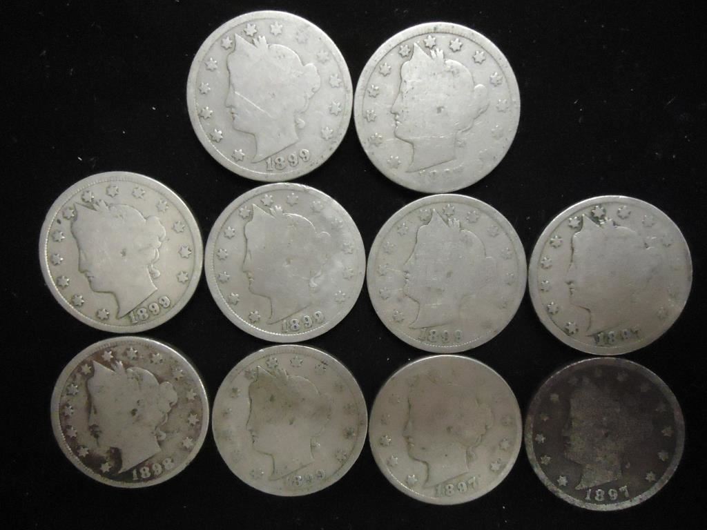 10 ASSORTED 1890'S LIBERTY "V" NICKELS