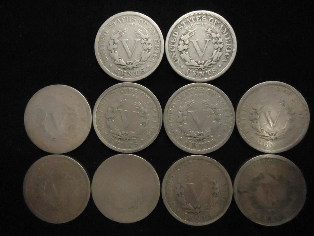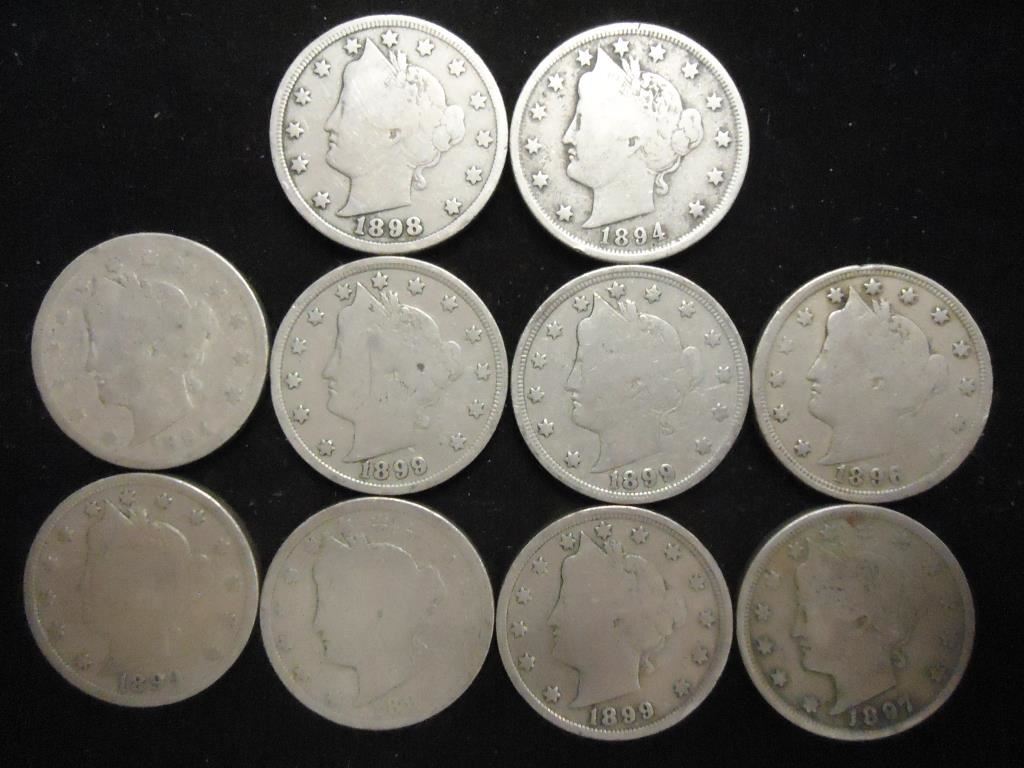 10 ASSORTED 1890'S LIBERTY "V" NICKELS