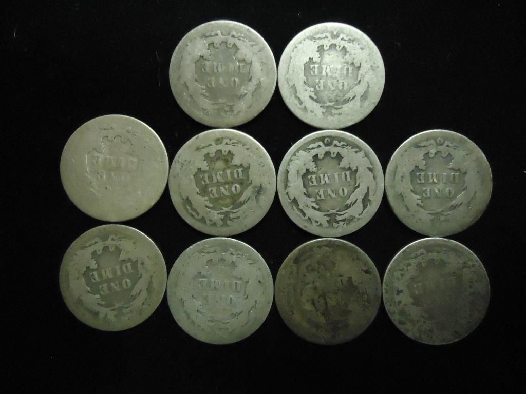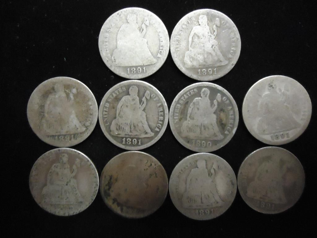 10 ASSORTED 1890'S SEATED LIBERTY DIMES