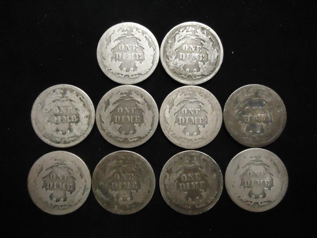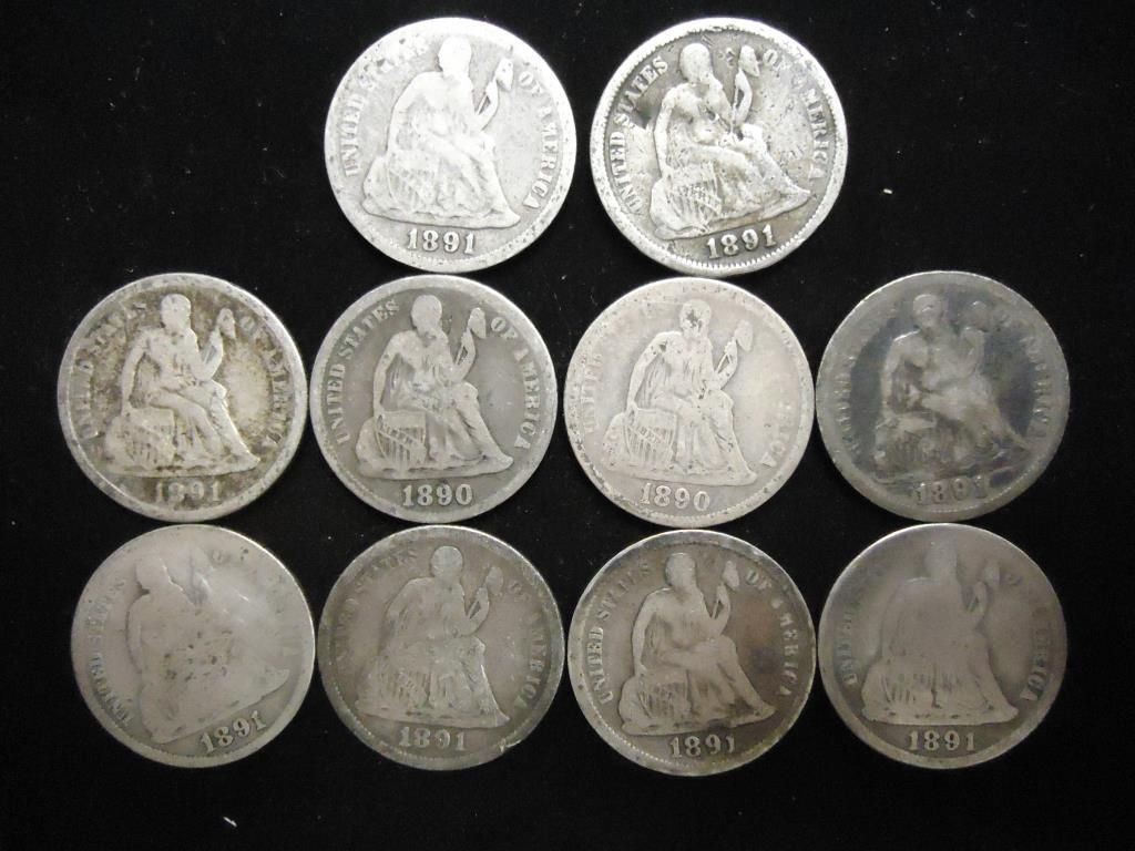 10 ASSORTED 1890'S SEATED LIBERTY DIMES