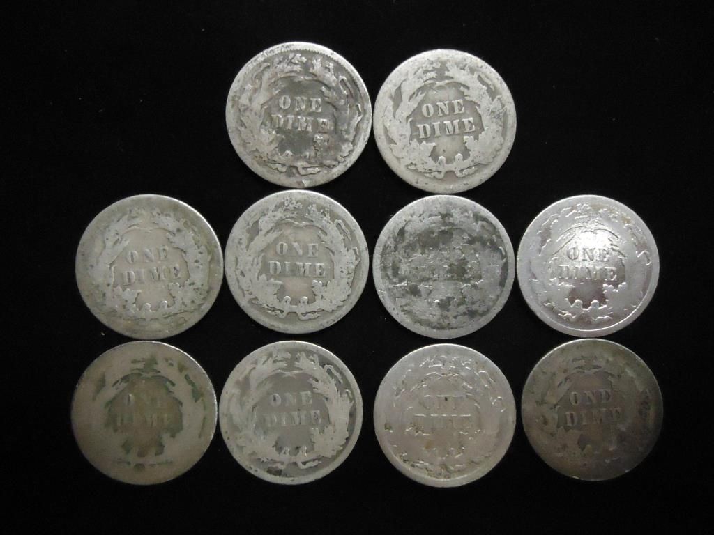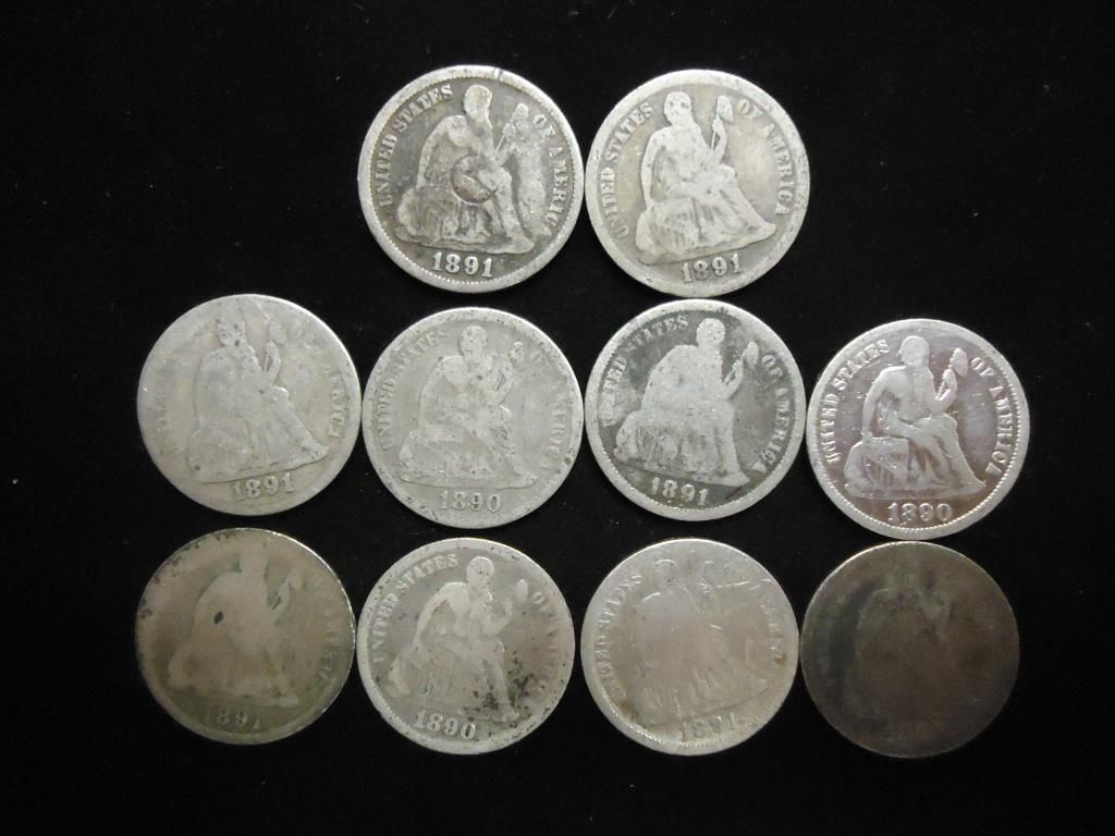 10 ASSORTED 1890'S SEATED LIBERTY DIMES