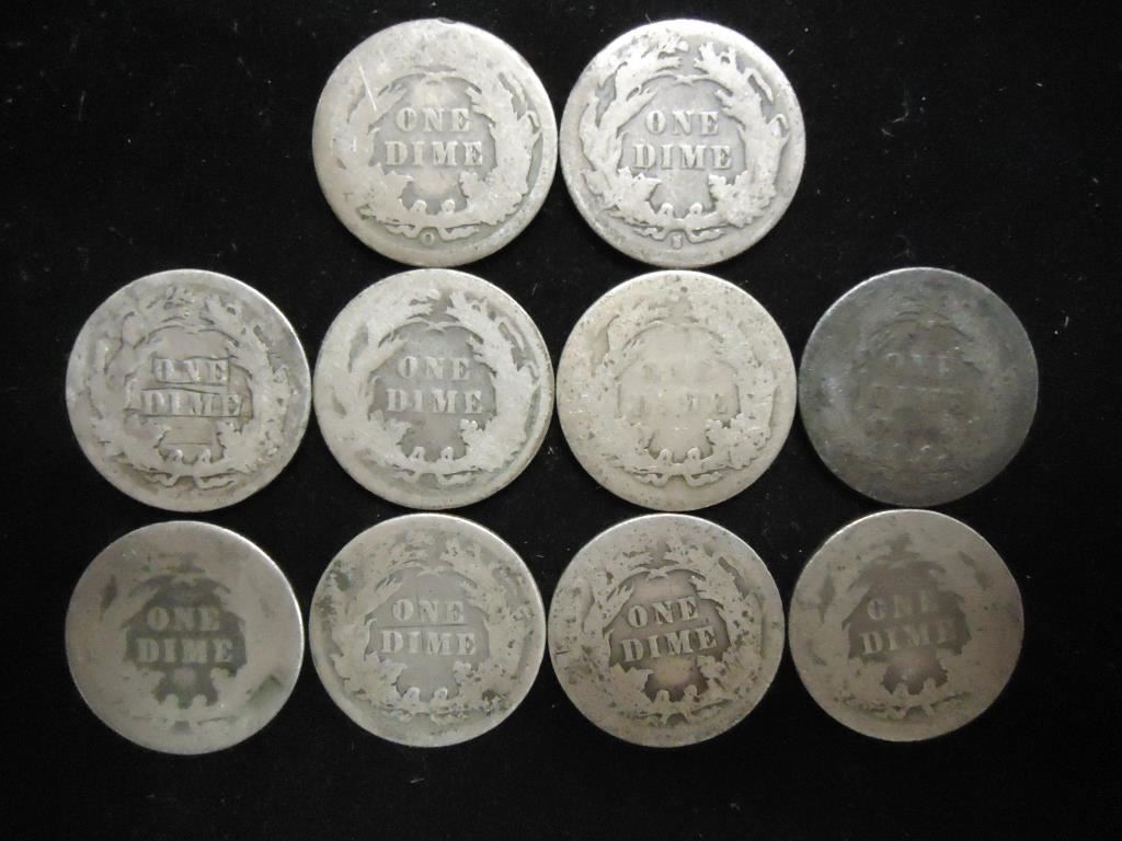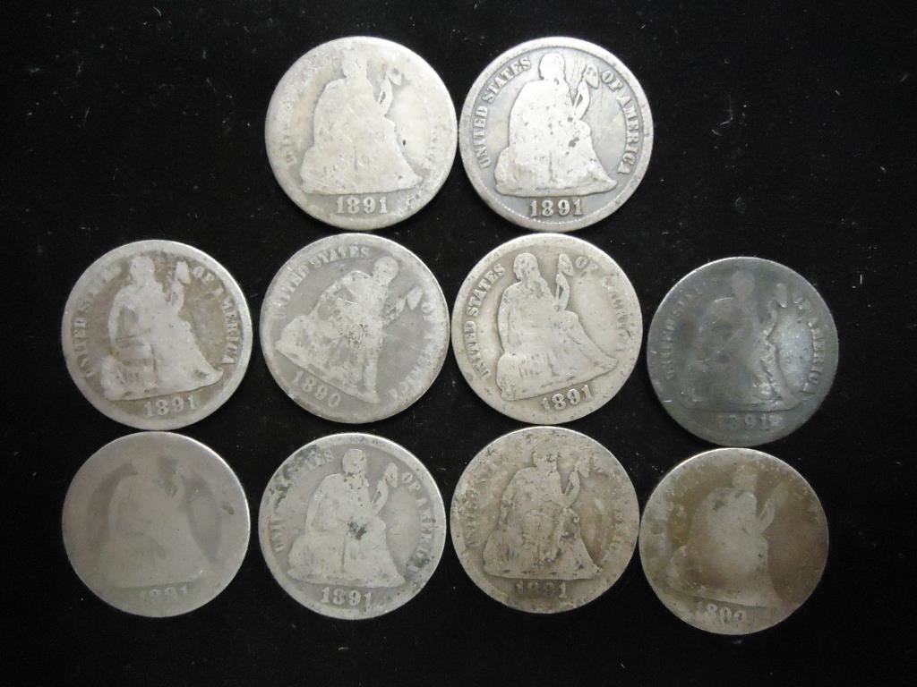 10 ASSORTED 1890'S SEATED LIBERTY DIMES