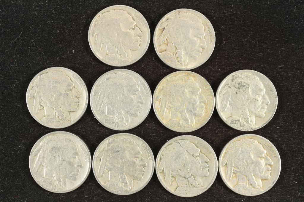 10 ASSORTED 1920'S BUFFALO NICKELS