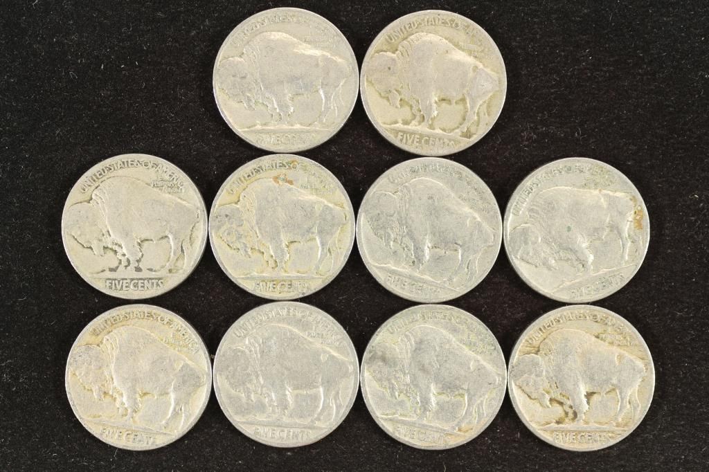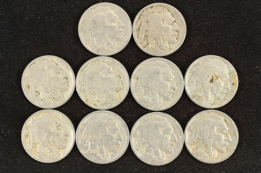 10 ASSORTED 1920'S BUFFALO NICKELS