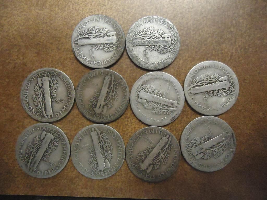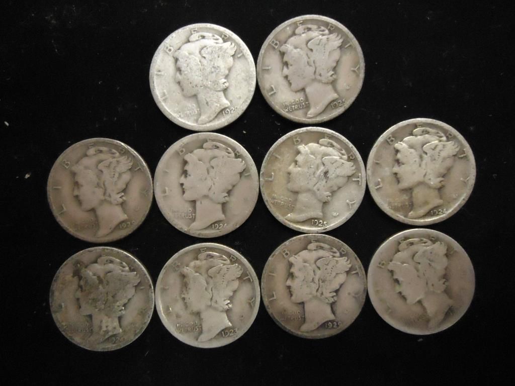 10 ASSORTED 1920'S MERCURY DIMES