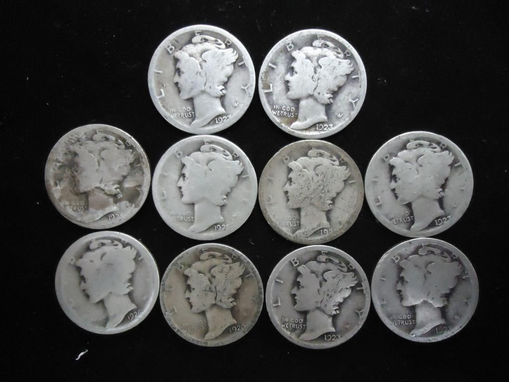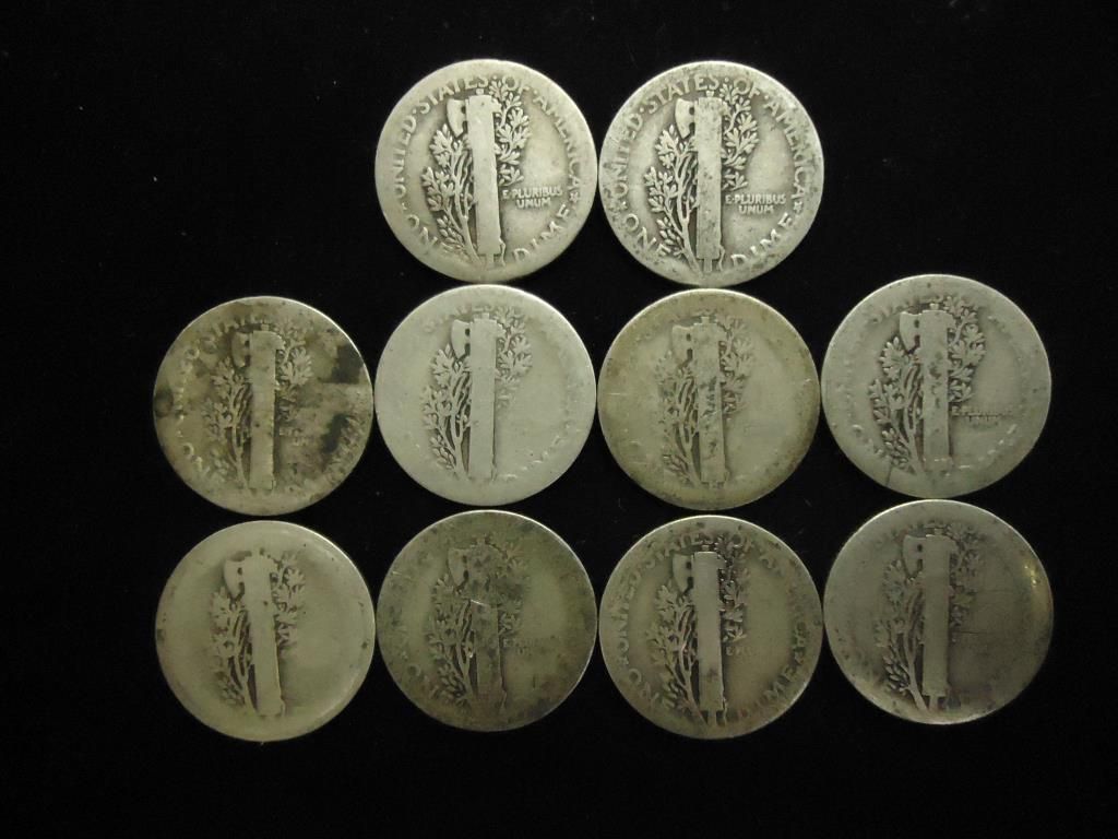 10 ASSORTED 1920'S MERCURY DIMES